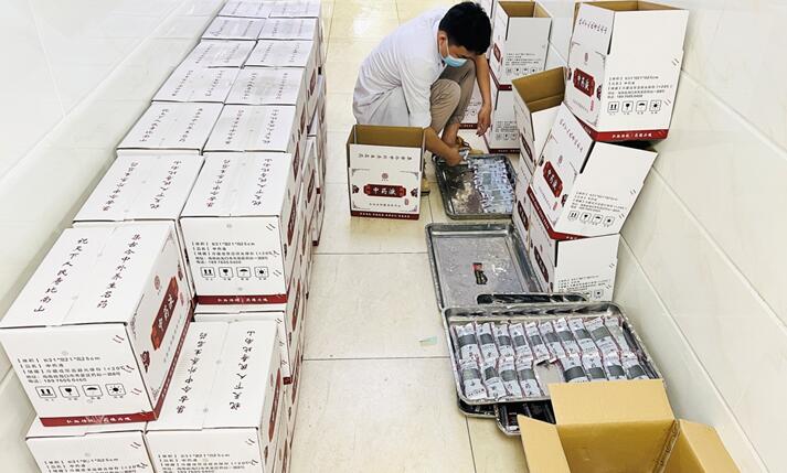 調(diào)劑室的藥師們負責審核、調(diào)劑、復核處方;煎煮車間按操作規(guī)程進行:泡、煮、打包的工序;成品庫統(tǒng)一收集成品,待冷卻后貼標、封裝、制單;配送人員星夜兼程,馬不停蹄地將中藥防感湯第一時間送往?谑卸鶄隔離點供三千余人服用,并向各市縣中醫(yī)院配送共計約一萬余付。各個工序忙而不亂,忙而有序。壽南山將士們在非常時期,表現(xiàn)出了可貴的責任擔當,大家心連心、肩并肩,主動參與、積極配合、鼎力支持疫情防控工作,共同筑起了堅不可摧的阻擊防線。
