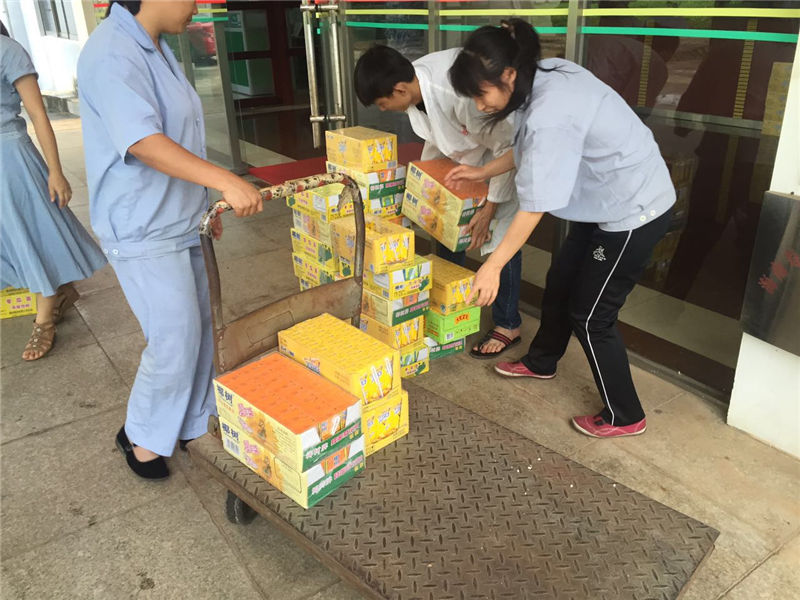 (上圖為防暑降溫用品送達(dá)我司) “送清涼”工作來(lái)到我司后,總工會(huì)領(lǐng)導(dǎo)詳細(xì)詢問(wèn)了解職工的生產(chǎn)生活,防暑降溫和勞動(dòng)保護(hù)等情況。